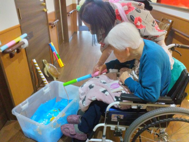 食後はカメ釣りゲームを楽しんでいただきました。